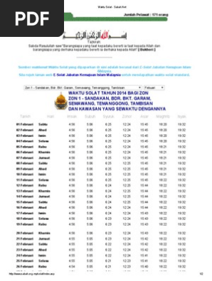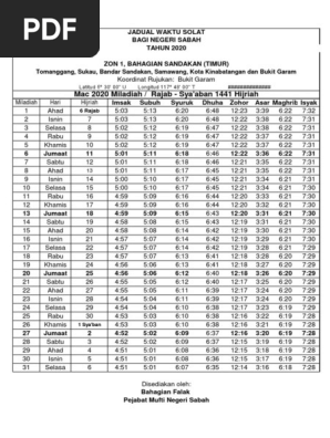 Jadual Waktu Solat Terkini Bagi Seluruh Negeri Sabah Tahun 1441h 2020 Mac Ogos Pdf
