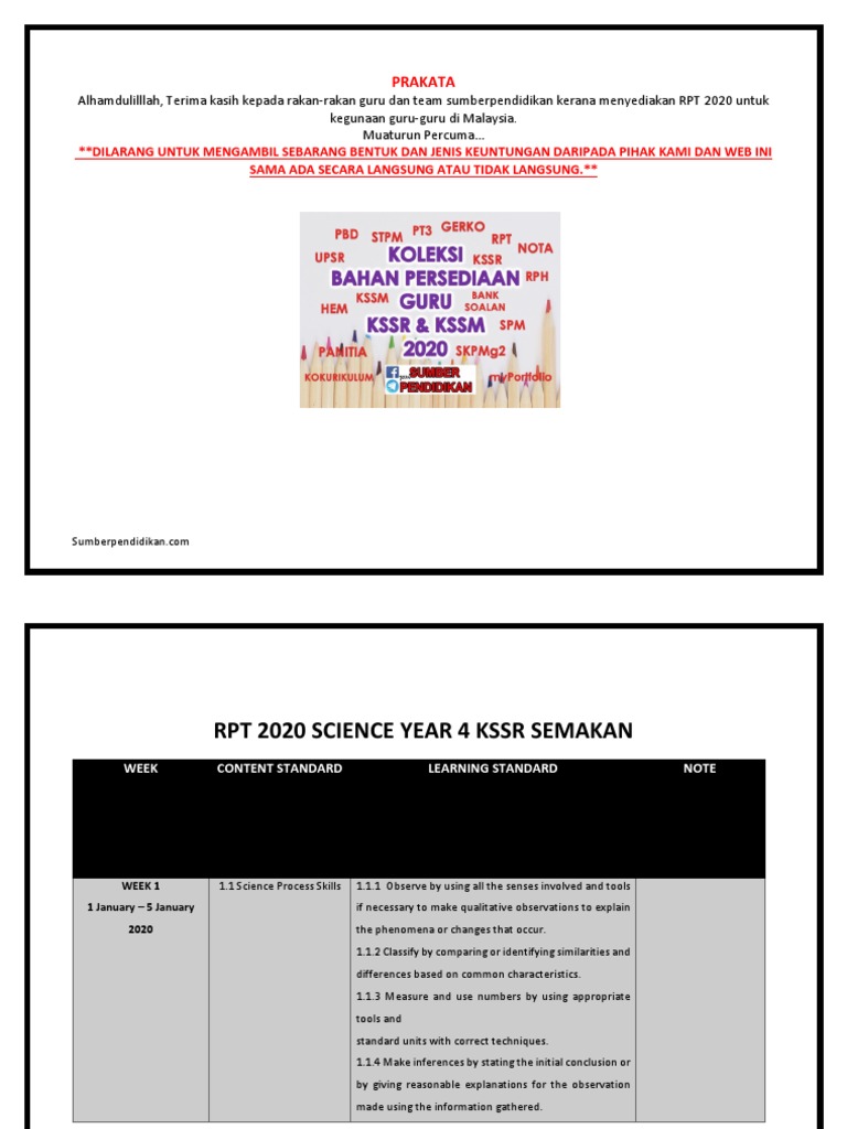 View rpt 2020 sejarah tahun 4 kssr semakandocx from SEMINAR 332 at University of Malaya. Pada setiap awal persekolahan ataupun hujung tahun antara bahan persediaan utama yang akan disediakan oleh guru adalah Rancangan Pengajaran Tahunan ataupun lebih dikenali sebagai RPT. Page 1 sekolah kebangsaan nyior chabang 07000 langkawi kedah rancangan pelajaran tahunan rpt reka bentuk dan teknologi rbt kssr semakan 2017 tahun 4 20.